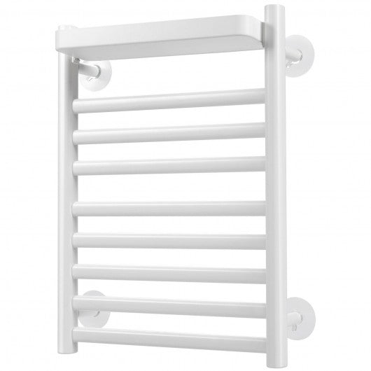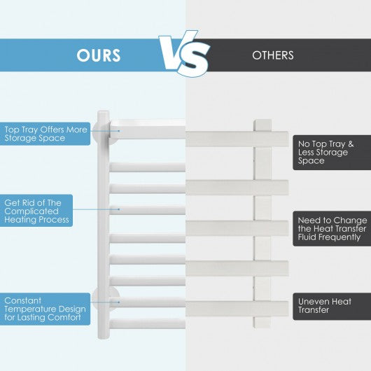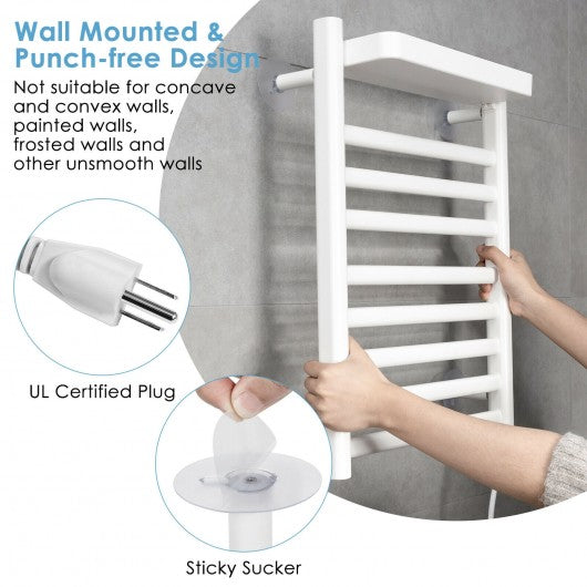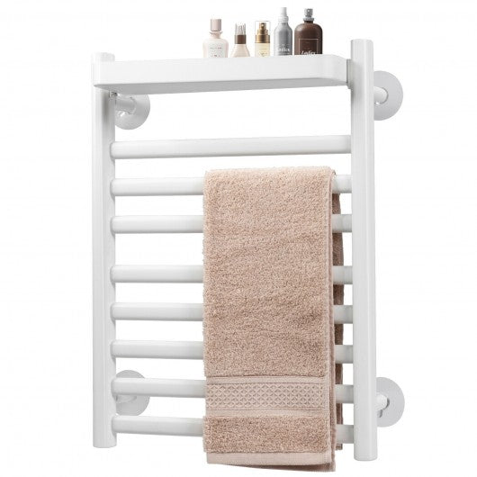 110W Electric Heated Towel Rack with Top Tray for Bathroom and Kitchen