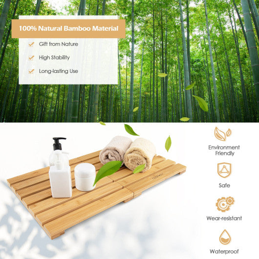 Bamboo Bath Mat with Non-slip Pads and Slatted Design-Natural