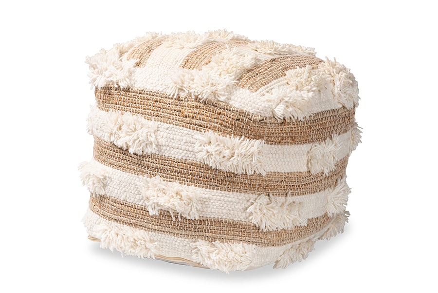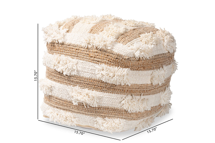 Baxton Studio Basque Modern and Contemporary Moroccan Inspired Natural and Ivory Handwoven Wool Blend Pouf Ottoman