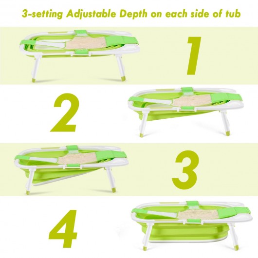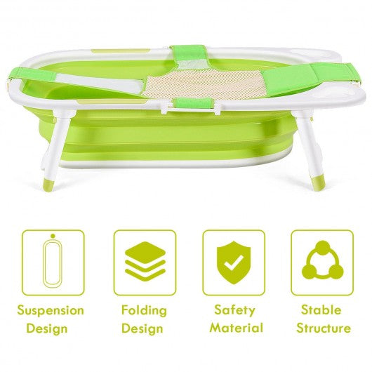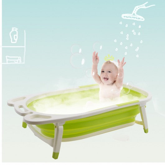 Baby Folding Collapsible Portable Bathtub w/ Block-Green