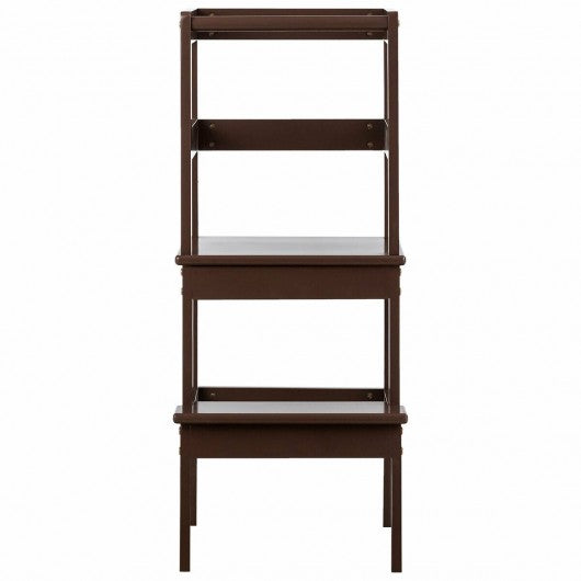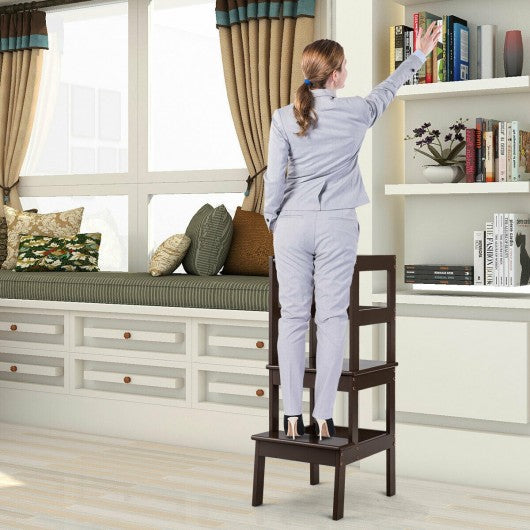 Wooden Kids Kitchen Learning Toddler Tower w/ Safety Rail-Coffee