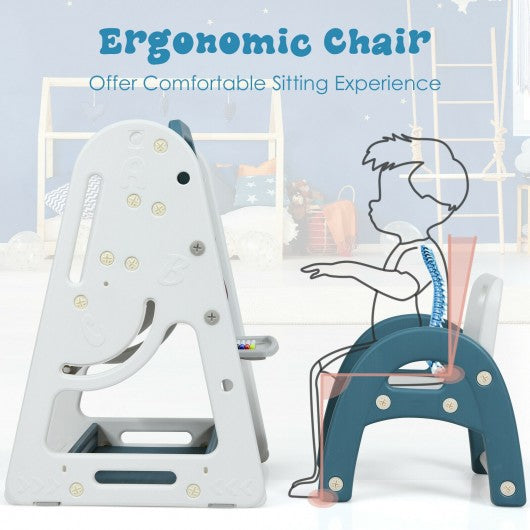 2 in 1 Kids Easel Desk Chair Set Book Rack Adjustable Art Painting Board-Blue
