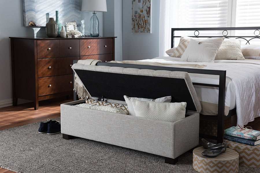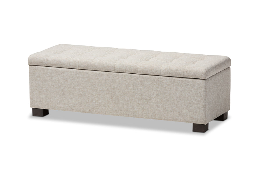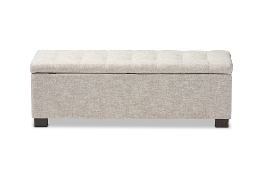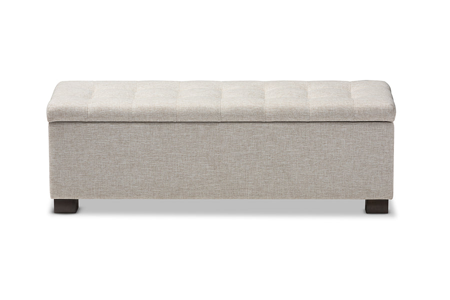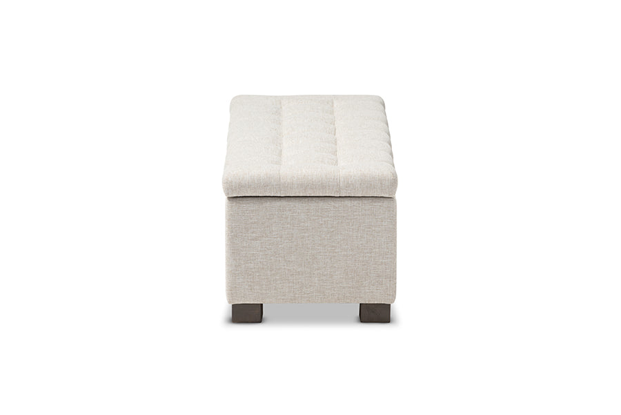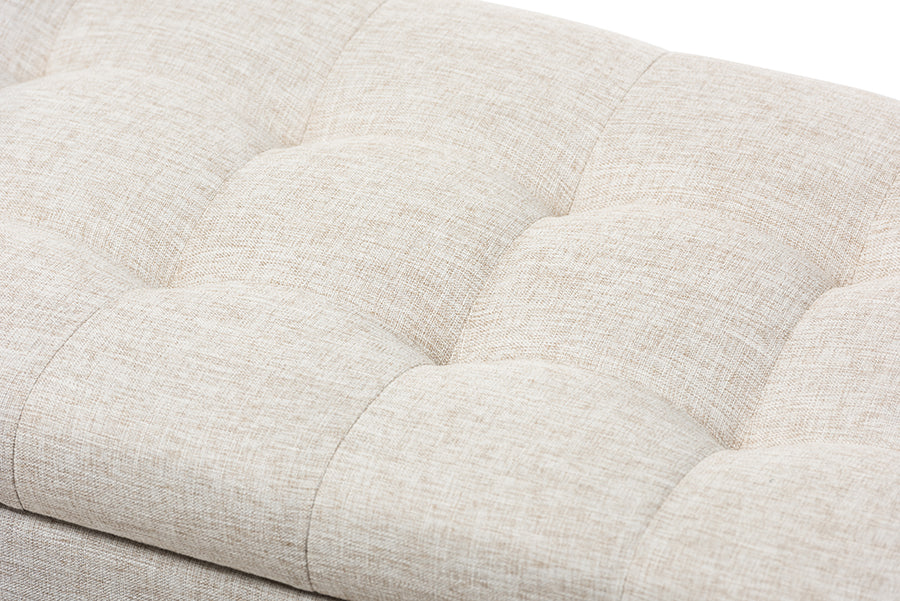 Baxton Studio Roanoke Modern and Contemporary Beige Fabric Upholstered Grid-Tufting Storage Ottoman Bench