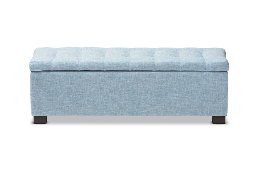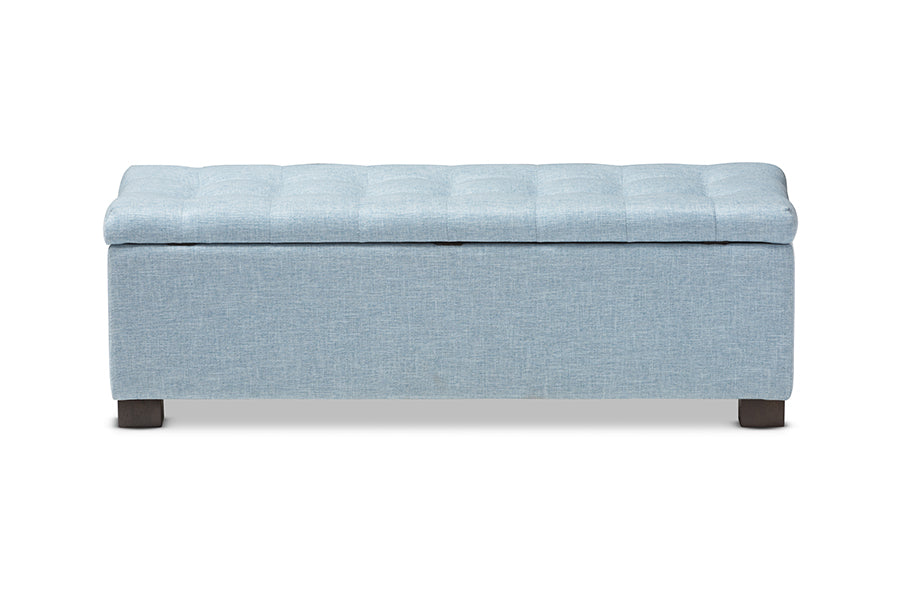 Baxton Studio Roanoke Modern and Contemporary Light Blue Fabric Upholstered Grid-Tufting Storage Ottoman Bench