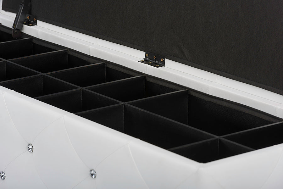Baxton Studio Seine White Leather Contemporary Storage Ottoman
