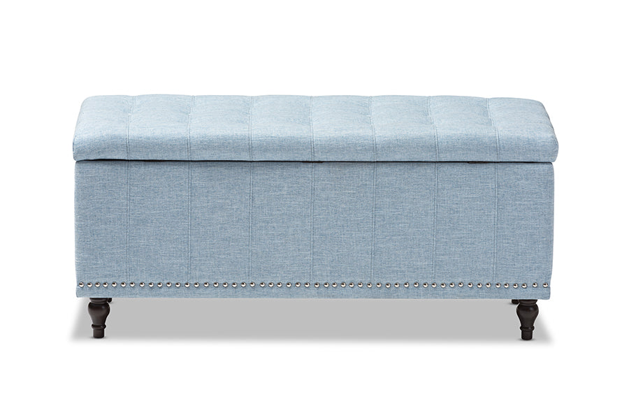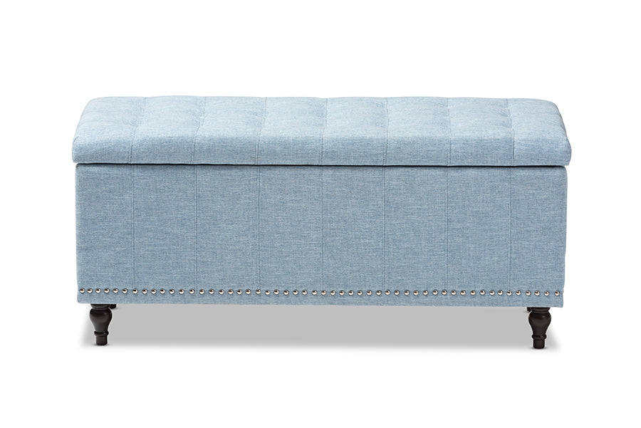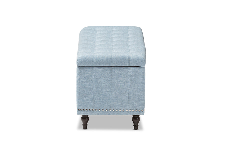 Baxton Studio Kaylee Modern Classic Light Blue Fabric Upholstered Button-Tufting Storage Ottoman Bench