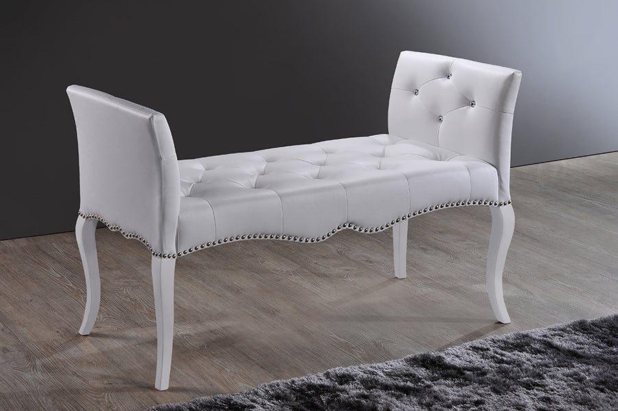 Baxton Studio Kristy Modern and Contemporary White Faux Leather Classic Seating Bench