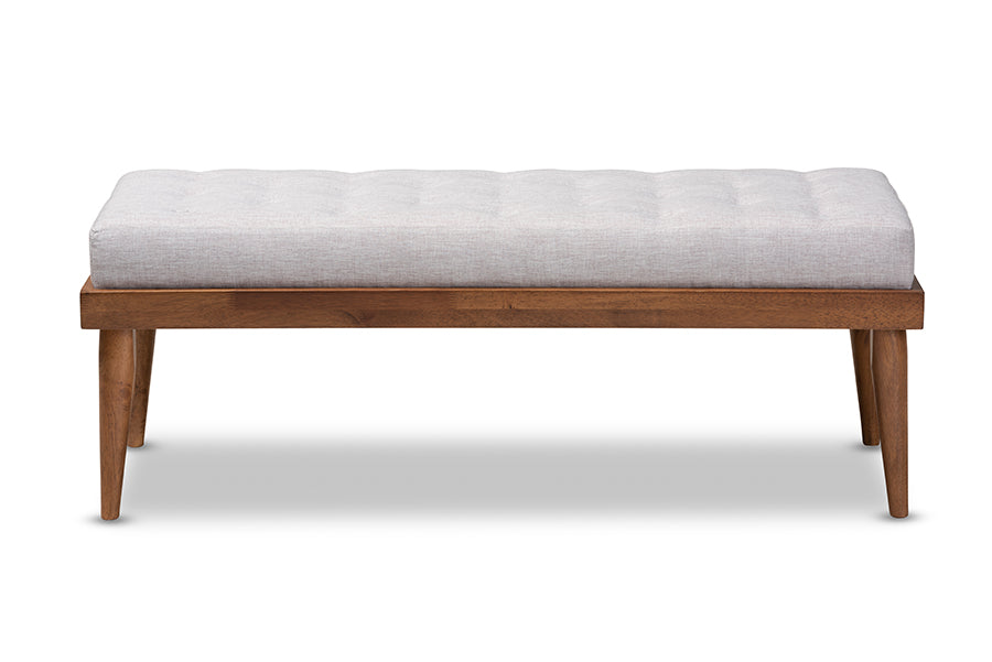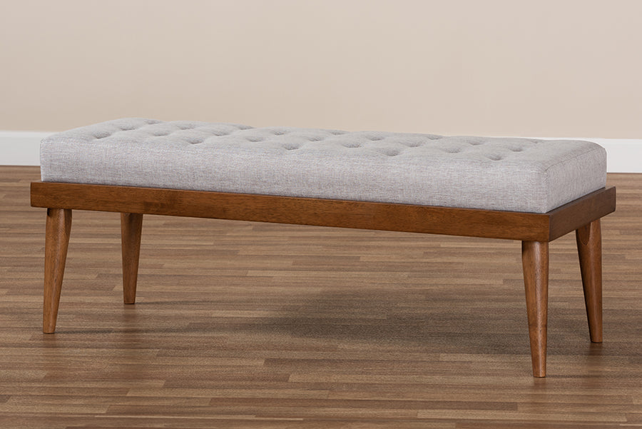 Baxton Studio Linus Mid-Century Modern Greyish Beige Fabric Upholstered and Button Tufted Wood Bench