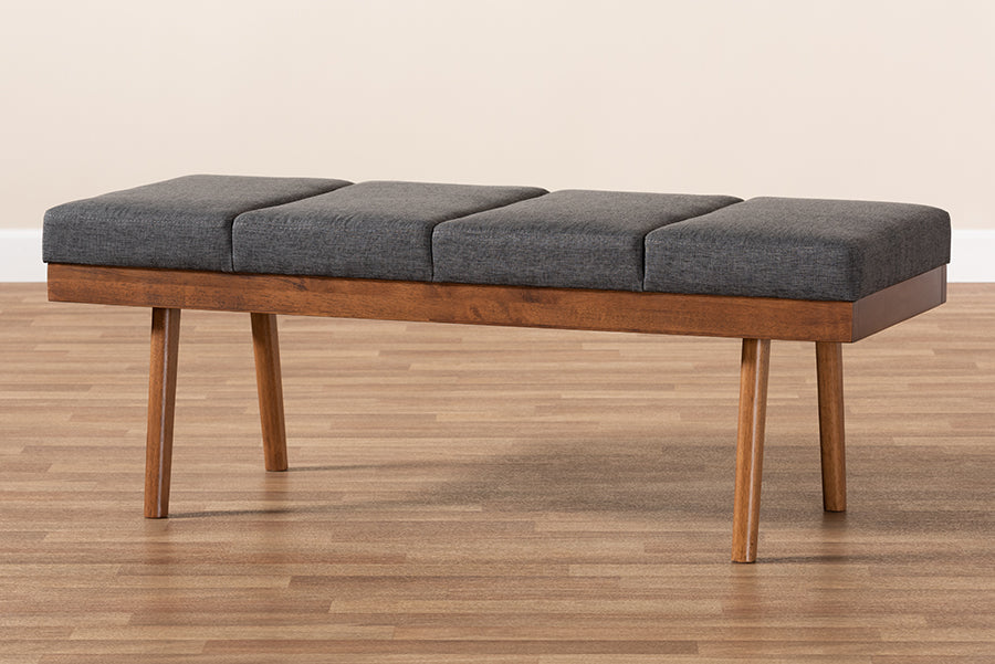 Baxton Studio Larisa Mid-Century Modern Charcoal Fabric Upholstered Wood Bench
