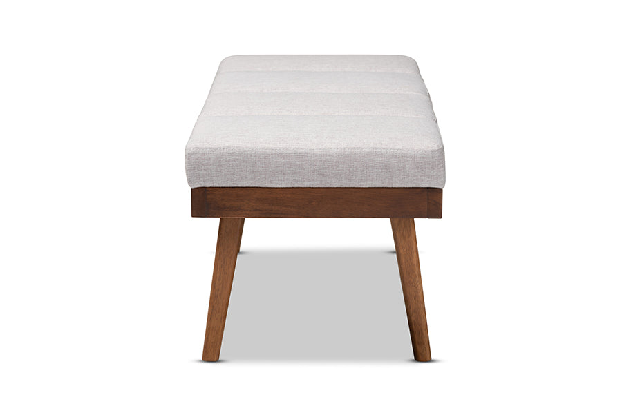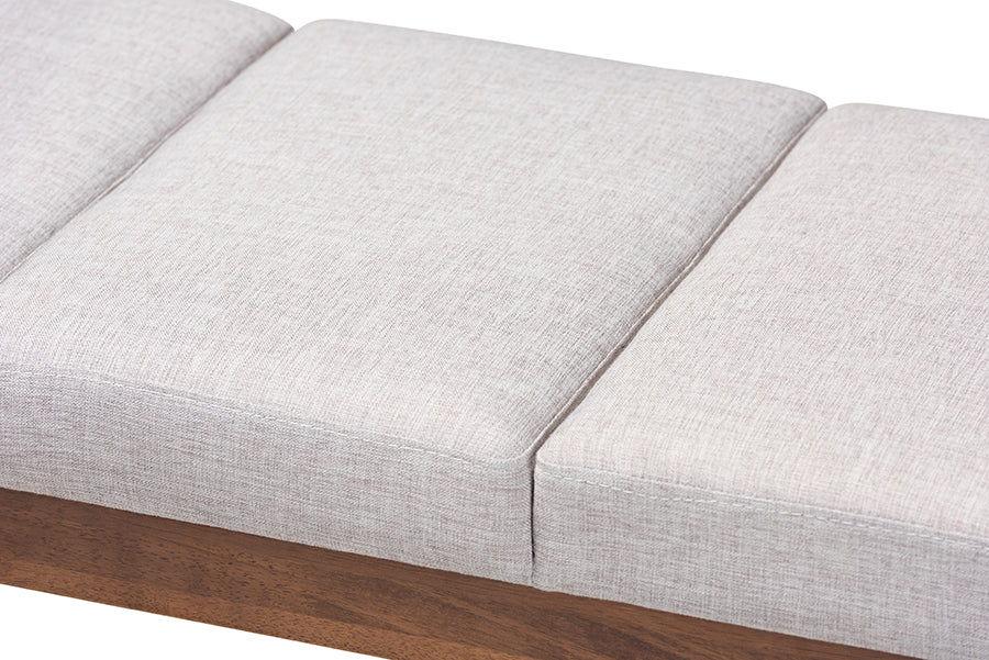 Baxton Studio Larisa Mid-Century Modern Grayish Beige Fabric Upholstered Wood Bench