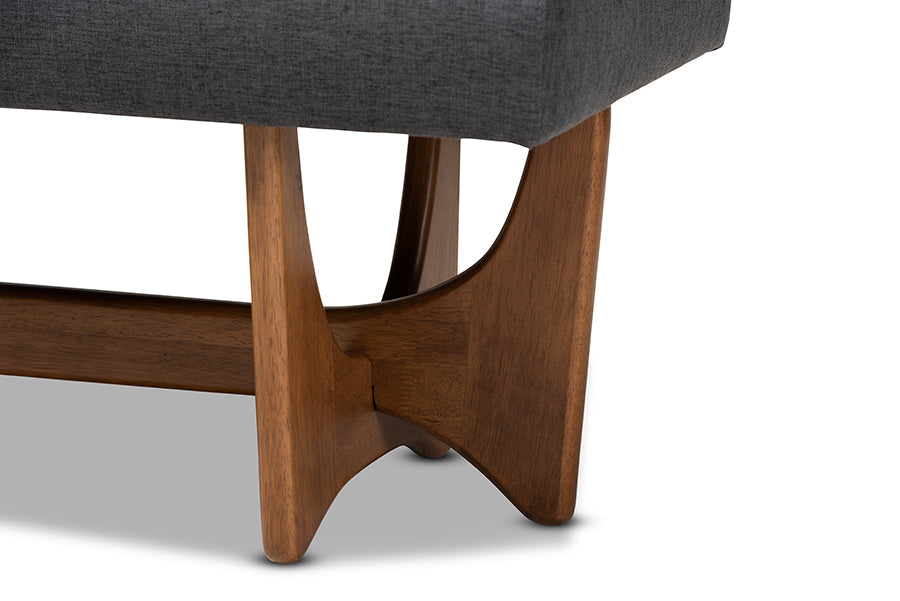 Baxton Studio Theo Mid-Century Modern Dark Grey Fabric Upholstered Walnut Finished Bench