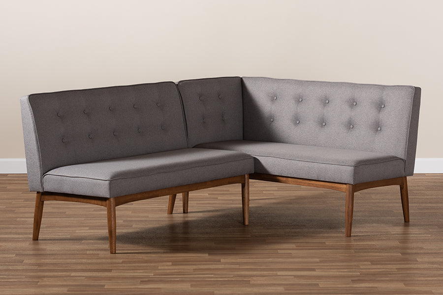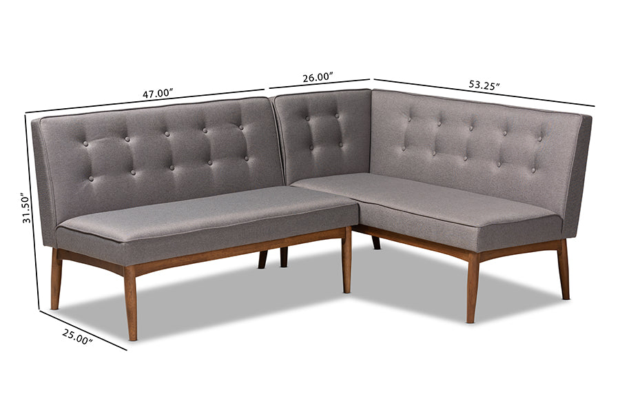 Baxton Studio Arvid Mid-Century Modern Gray Fabric Upholstered 2-Piece Wood Dining Nook Banquette Set