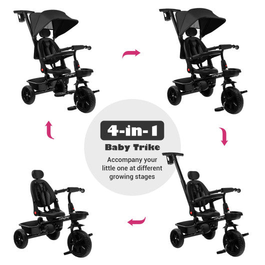 4-in-1 Reversible Toddler Tricycle with Height Adjustable Push Handle-Black