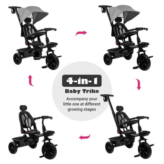 4-in-1 Reversible Toddler Tricycle with Height Adjustable Push Handle-Gray