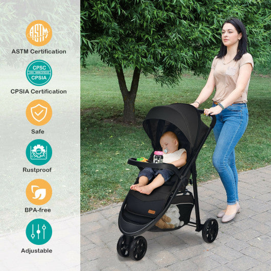 Baby Jogging Stroller with Adjustable Canopy for Newborn-Black