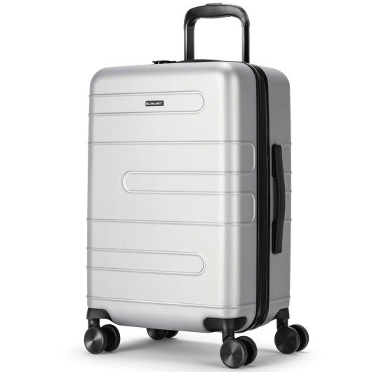 20 Inch Expandable Luggage Hardside Suitcase with Spinner Wheel and TSA Lock-Silver