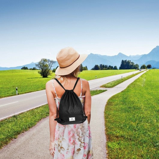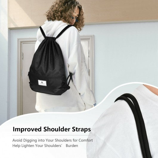 Drawstring Backpack String Bag Foldable Sports Sack with Zipper Pocket-Black