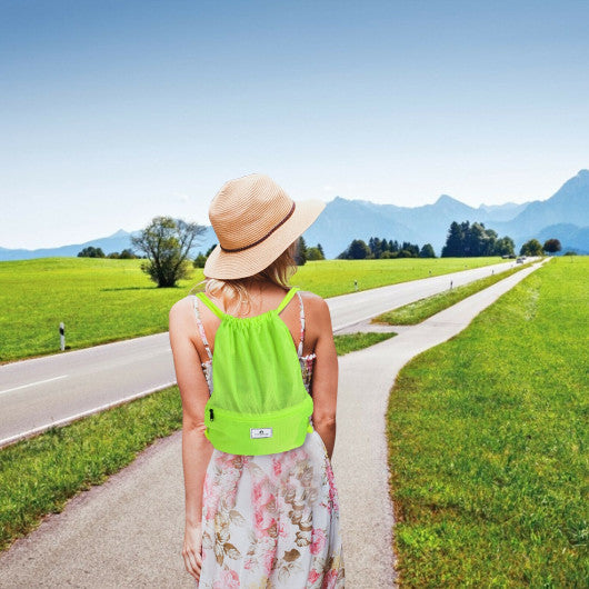 Drawstring Backpack String Bag Foldable Sports Sack with Zipper Pocket-Green