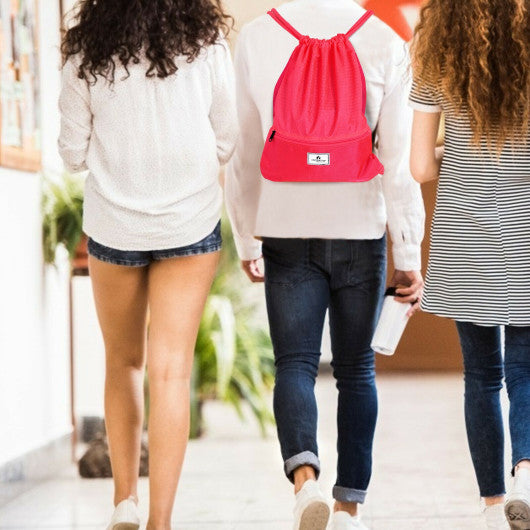 Drawstring Backpack String Bag Foldable Sports Sack with Zipper Pocket-Pink