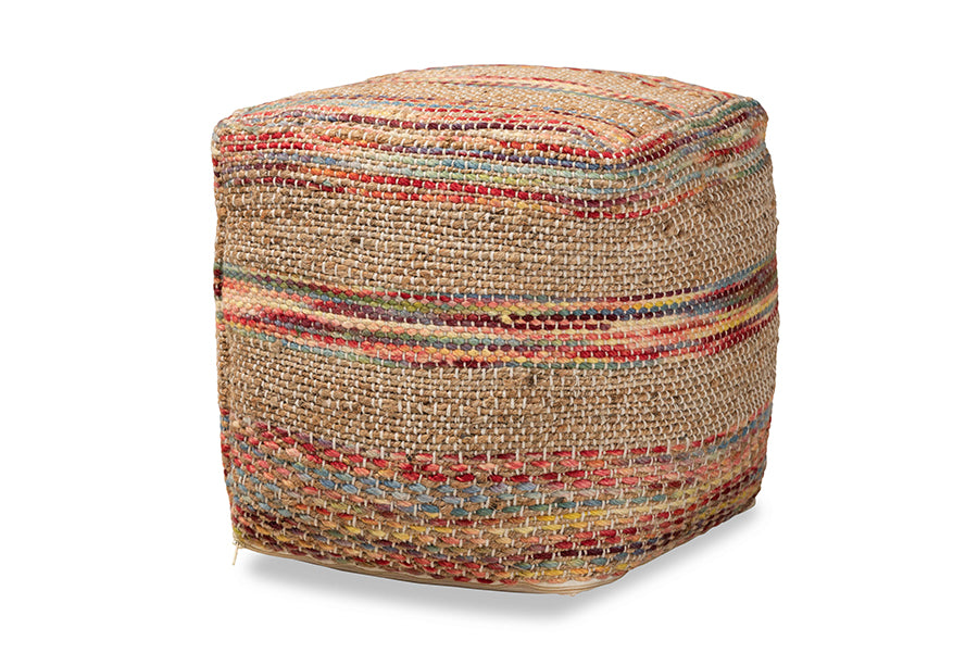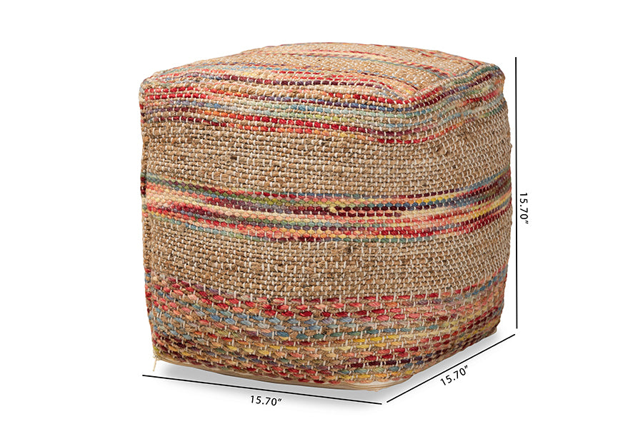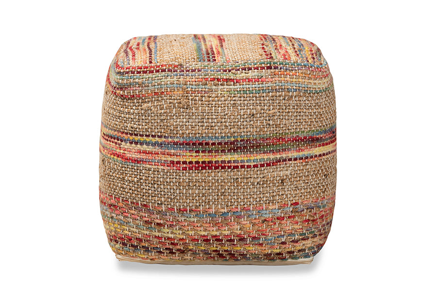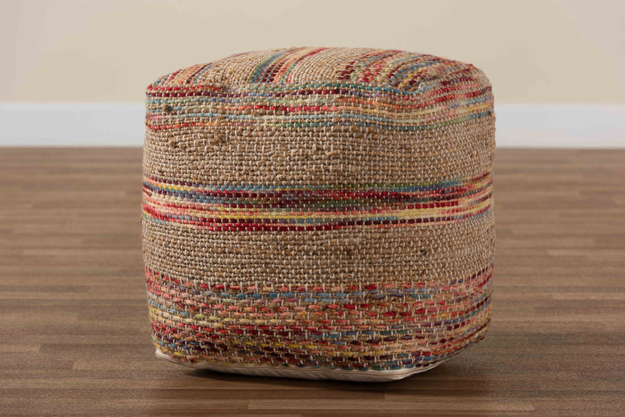 Baxton Studio Caiman Moroccan Inspired Multicolored Handwoven Hemp Pouf Ottoman