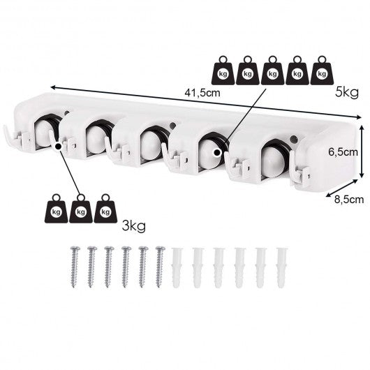 Wall-mounted Mop Holder Hanger with 5 Positions