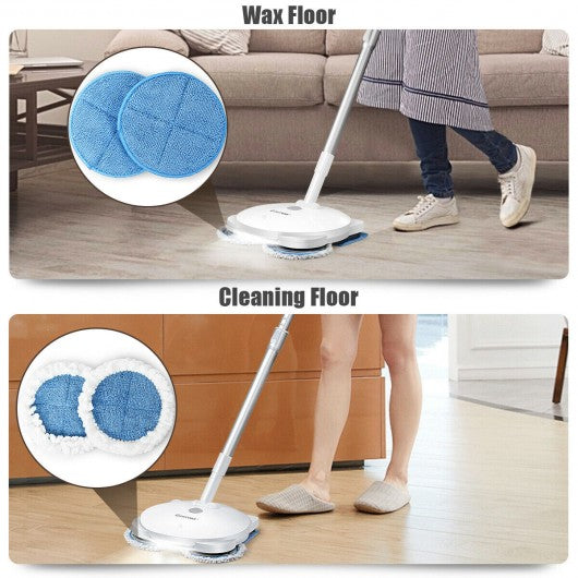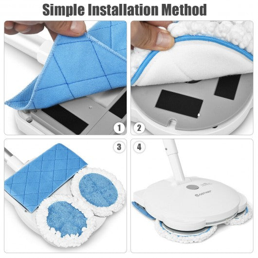 If you finding some replaceable pads for your electric mop and you need some pads for waxing this replaceable set is a good choice for you. The set includes five pads which two of them are for waxing and three of them are for cleaning. These pads all can be used separately or with our electric mop. Made of premium microfiber the pad is easier to absorb dust and liquid on the floor than common cloth. Many sorts of surfaces can be cleaned up such as wood bamboo tiles walls and windows without scratching. With special material on the back these pads are convenient to stick to the bottom of the mop to start cleaning. After cleaning you can wash pads under warm water by your hand or washing machine. The microfiber dries quickly and can be ready to be used again. Including four round pads and one oblong pad 2 pads are for waxing and 3 pads for cleaning Premium and tight microfiber absorbs liquid and dust well Soft and tight pads won?t scratch your floor Can be used with electric mop or separately Easy to stick to the bottom of the mop to clean Washed by hand or machine after using Pads dry quickly and can be ready to be used again