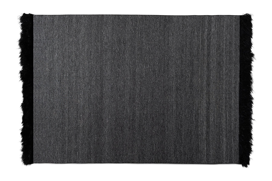 Refresh your home with the elegant minimalism of the Dalston rug. Handwoven in India, this rug is comprised of wool, viscose, and brisa hide. Shades of grey are framed by deep black for a stunning display that adds a modern touch to any room. The fluffy sides of the Dalston contrast with the smoother center to add texture and depth for an attention-grabbing display. An effortless way to add contemporary style to any space, the Dalston rug is an outstanding addition to the home.