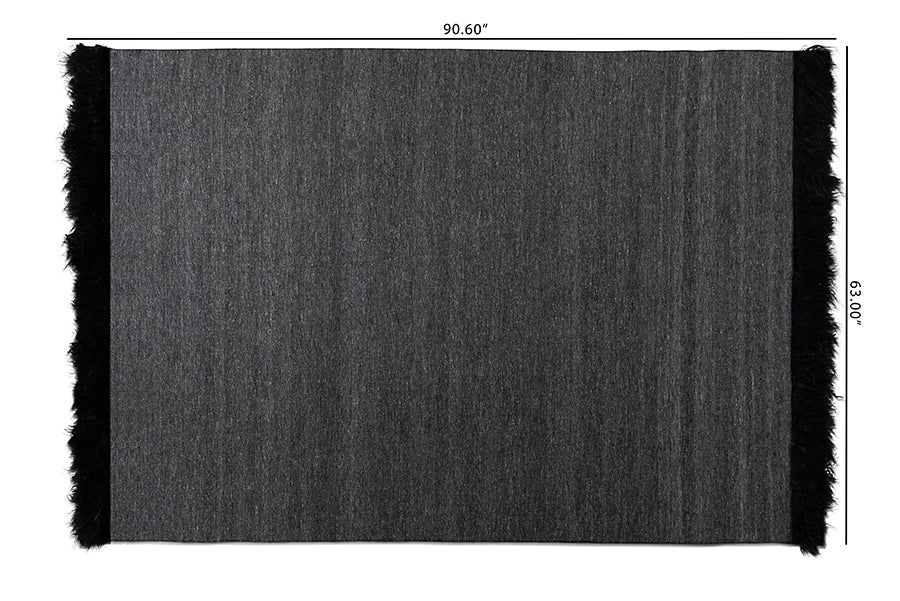 Baxton Studio Dalston Modern and Contemporary Dark Grey and Black Handwoven Wool Blend Area Rug