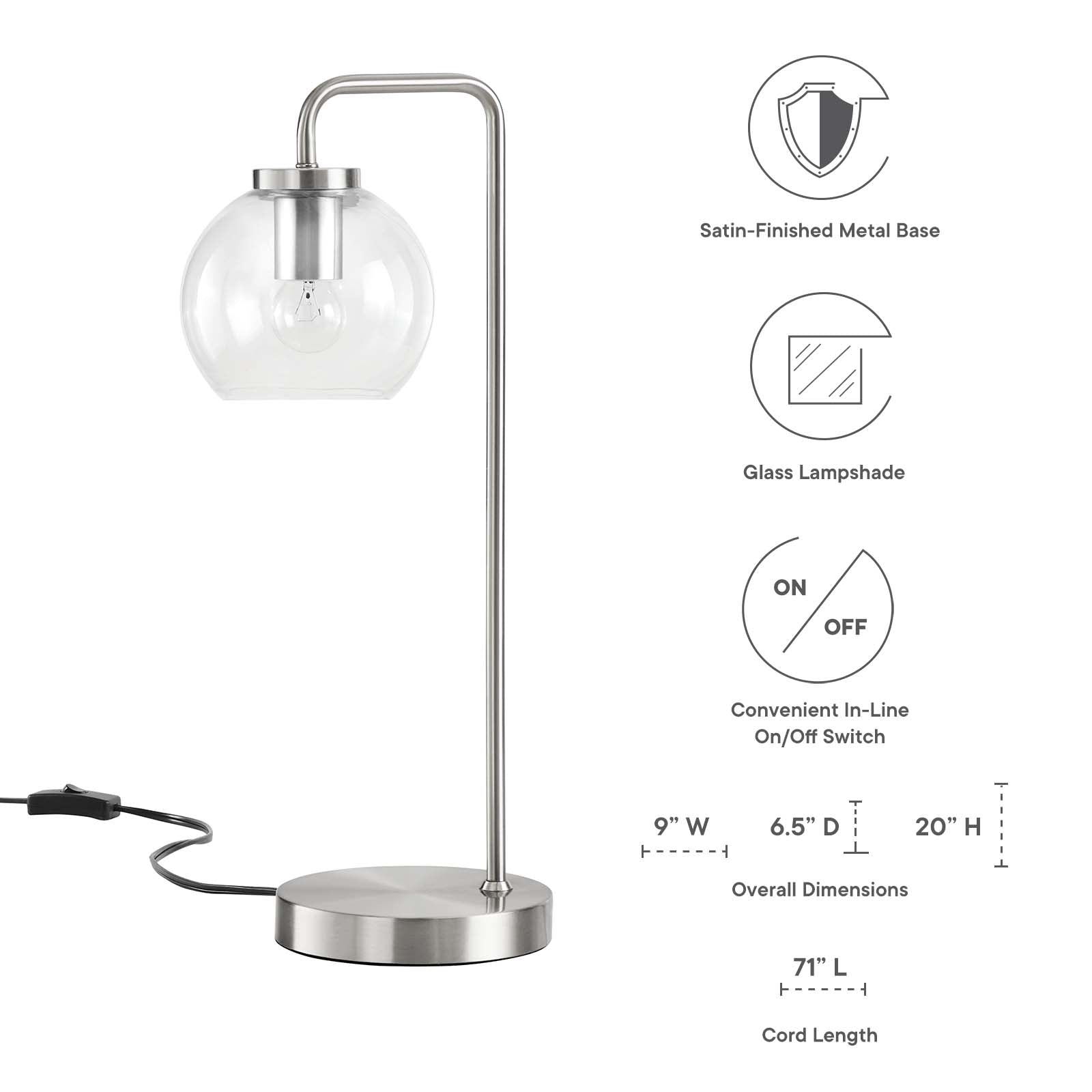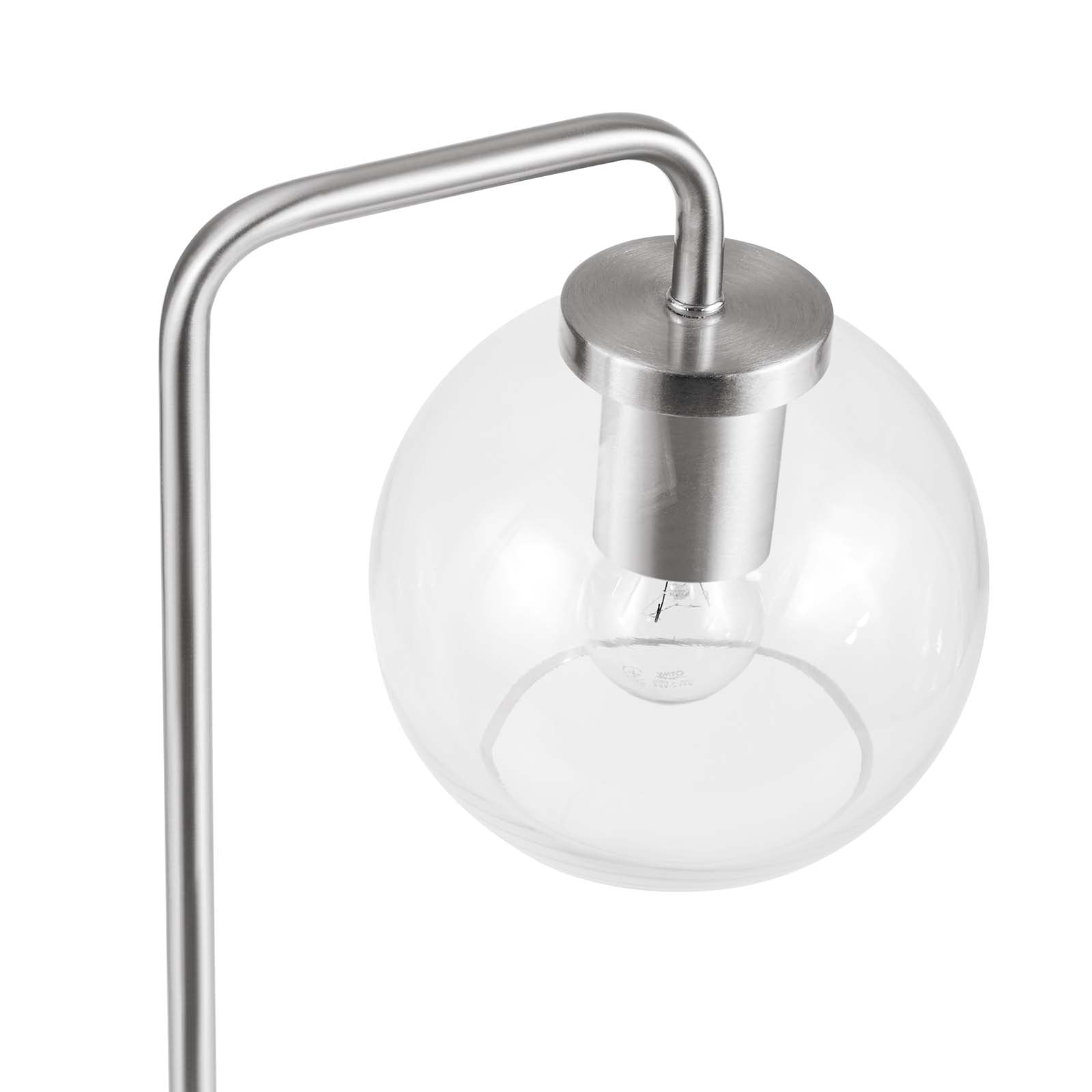 Take a bold stance on your home lighting decor in your bedroom, living room, or office space with the industrial design of the Silo Table Lamp. Brighten a reading nook or a cozy window seat with the architectural simplicity of this desk lamp, bringing modern farmhouse charm into mid-century modern, contemporary, or eclectic settings. Silo illuminates with a transparent glass globe lampshade suspended on a bent pipe arm flowing downward into the off-centered rod on a sturdy iron base. This side table lamp has a black power cord and a convenient on/off switch. A bedside lamp, Silo requires 1 E26 60W max bulb or LED equivalent (not included). Compatible with dimmer switches (not included). Assembly required. Clean with a soft, damp cloth. Set Includes: 1 - Silo