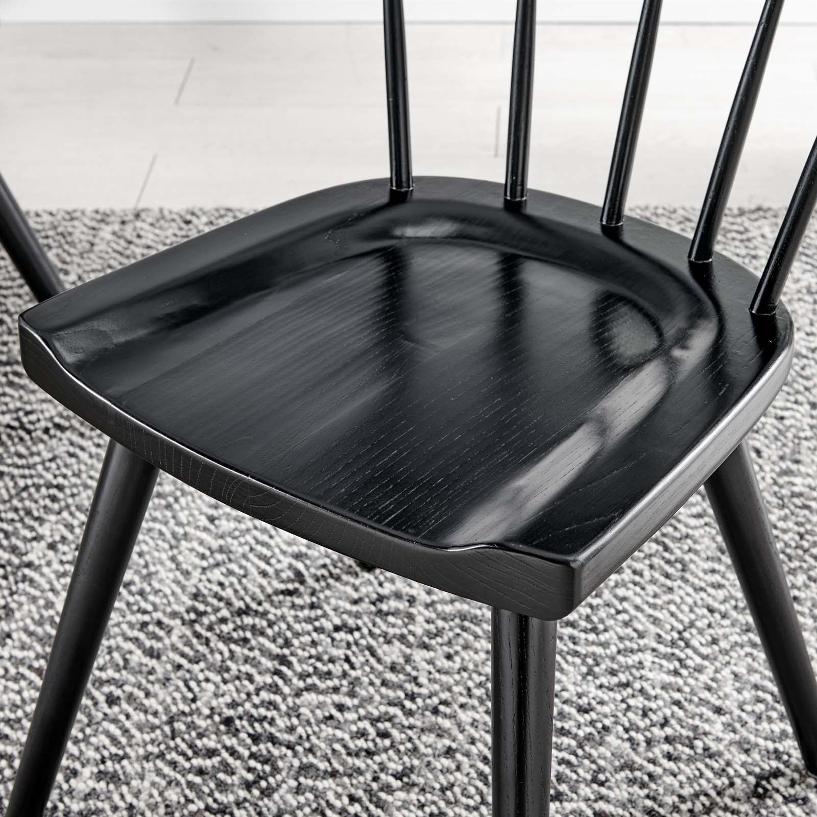 Complement a wide variety of color schemes and decor styles in your dining space with the Sutter Wood Dining Side Chair Set. Crafted with durable elm wood, this dining chair set features thin spindles and a charming tapered silhouette that brings modern farmhouse style to your dining table. Splayed dowel wood legs with non-marking caps support this versatile chair set that also serves as beautiful accent chairs in a living space, bedroom, or office. Set Includes: Two - Sutter Wood Dining Side Chair