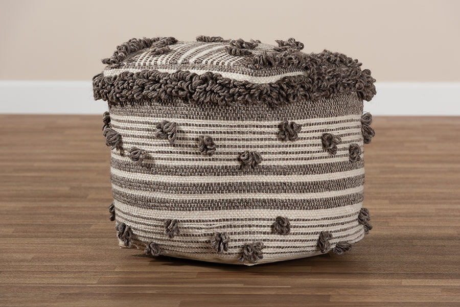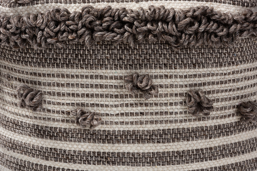 Baxton Studio Eligah Moroccan Inspired Ivory and Brown Handwoven Wool Pouf Ottoman