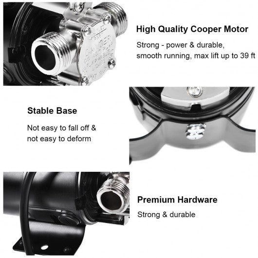 This is lightweight electric power water transfer removal pump. This lightweight portable utility pump is capable of transferring up 330 gallons per hour is perfect for household applications and /or emergency use. Compact and easy to store ideal for everyday household water transferring requirements. Perfect for water distribution such as watering lawns or gardens. Great for draining waterbeds clogged sinks and aquariums. If you are looking for the electric power water transfer removal pump don't hesitate to buy it! High quality and brand new Patented design flexible impeller water transfer utility pump Application includes removing water from flooded basements waterbeds washing machines blocked sinks water heaters and tanks 3" / 4" garden hose thread connection for easy installation Clear see-through suction hose allows easy monitoring of pump dry-run Water transfer up to 330 gallons per hour maximum lift up to 39 feet