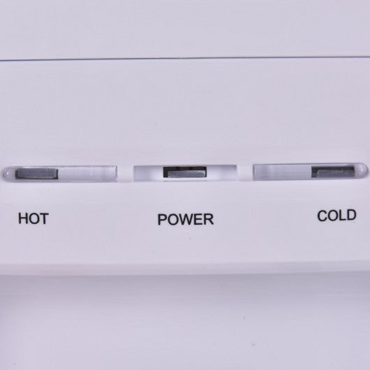 Specification: Color: White Main material: ABS+PP Voltage: 110 V/60 Hz Refrigeration power: 80 W Heating power: 500 W Normal temperature water tank: 3 L Normal temperature water: 42�F to 50�F Hot water tank: 1L Heating capacity: 4 L/H Heating temperature: 190�F to 203�F Dimensions: 12" x 11" x 31.5"(L x W x H) Weight: 20 lbs Style: Traditional Universal non-spill water guard system fits 2 gal and 5 gal bottles Package includes: 1 x Water dispenser (not including bottle? 1 x Instruction manual