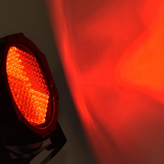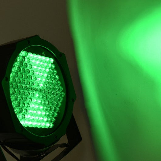 The 127 RGB LED projector is a perfect choice for party using. There are individual control of red green and blue LEDs satisfying your demand of different atmosphere. The projector which features professional 7 channels DMX-512 LED stage light supports dimmer strobe pulse gradient-ramp and color change lighting effects. The mode and color of the light will change when the change of sound. A very practical par light has standard modes of color jumping color blending and strobe. The projector is of a flexible installation with dual bracket you can mount it on the wall or standing on the floor great for club dj show home party ballroom bands show bar etc. High quality and brand new 16 W par stage light with 127 psc leds (red43 + green42 + blue42) Individual control of red green and blue leds. Professional 7 channels dmx-512 led stage light. Support dimmer strobe pulse gradient-ramp color change lighting effects The strobe speed is adjustable 5 control modes: Dmx512 master slave sound activated self-propelled and stand-alone strobe Dual mounting bracket to hang on truss or install on a wall or stand on the ground. Engineering plastic housing cover super light weight but durable Low power consumption Great for club dj show home party ballroom bands show bar etc
