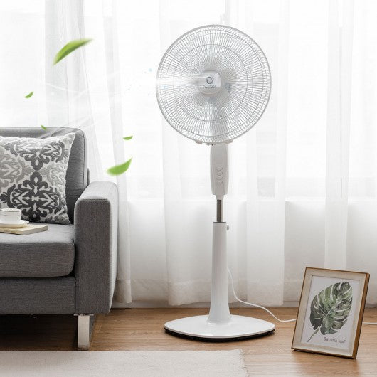 This 16" height adjustable pedestal fan uses dual-blade design to create a full and satisfying breeze. It has 5 large blades and 5 small blades to move a high volume of air wherever it's needed. With 3 wind speed settings you can customize this fan for optimal comfort. The height of this fan can be adjusted to meet your different needs. This oscillating stand fan can make all the room cool and give you a more comfortable and consistent breeze. This pedestal fan will make you cool in hot day. Don't hesitate to buy it! Dual-blade design: 5 large blades and 5 small blades create full satisfying breeze 3 wind speed settings (Low/Middle/High) for optimum comfort The height can be adjusted from 44" to 53" Oscillation can make the whole room cool Features a sturdy round base Great for office bedroom and living room Assembles easily with no tools required