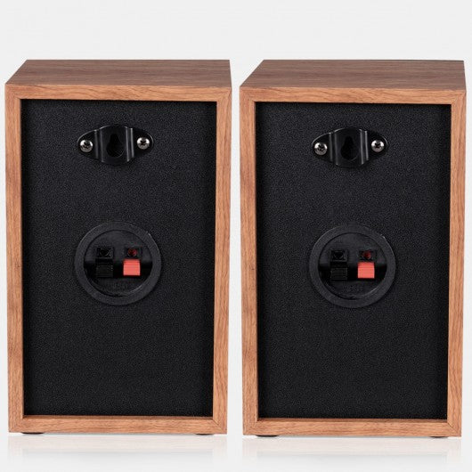 This pair of passive bookshelf speakers are highly efficient so they can be driven easily by even the most modestly powered home system. High efficiency design creates full spacious clear sound with as little as 20 watts. Speakers have 4" woofer and 1" tweeter titanium coated and other components. It can easily install your standard raw speaker wire with the spring loaded terminals. These speakers have a modern design with the non-resonant MDF enclosures with PVC. These speakers are perfect for home theater surround sound systems general music or any application in between. It is priced and sold as a pair. If you are looking for a modern speaker don't hesitate to buy this one! Scientific and efficient design: Sonically matched speakers are designed to work with each other in a synergistic manner each performing a specific function in an integrated speaker system with balanced response across all speakers Professional and high quality: This speakers set's signal to noise ratio is 80dB(A) frequence response is 75 Hz-18KHz and it's equipped with the 4 inches woofer and 1 inch tweeter so that it can deliver a lush and balanced soundscape it can provides the superior home theater and music performance Need amplifier: The primary function of this is to provide sound quality without damage but it doesn't have the power amplifier so can't be used directly when it connects with the sound' s analog signals. These speakers require a home audio receiver or amplifier to power them Equipped with the hooks: There are the hooks on speakers' backside it provides the great convenience for hanging on the wall or bracket if you want Sturdy and elegant MDF enclosure: The bookshelf speakers set adopts the high quality MDF which PVC is pasted to the outside it's extremely sturdy and beautiful and this MDF enclosure minimizes acoustic resonance