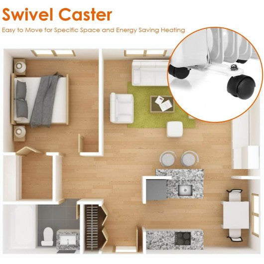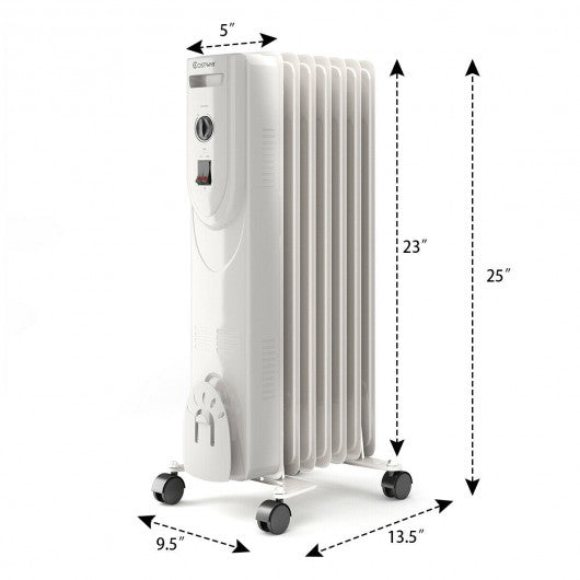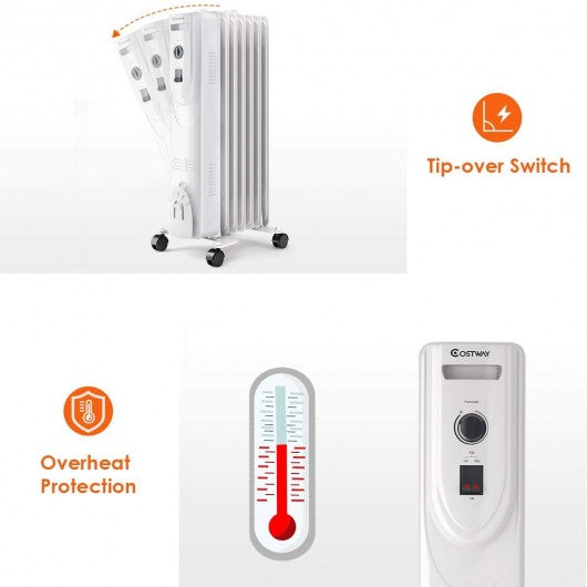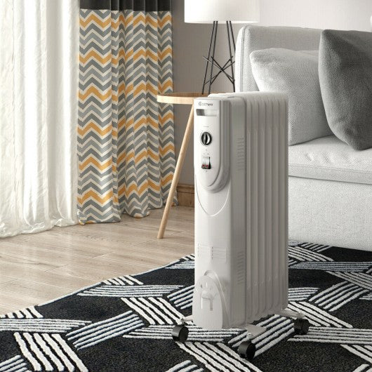 1500W 7-Fin Portable Electric Oil Filled Radiator Heater