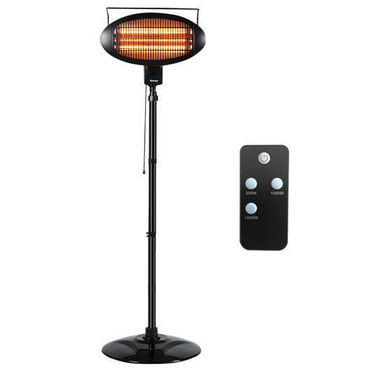 Warm your home with our electric patio heater. This patio heater is made of premium steel which can give you long years of enjoyment. With IP34 rating the electric heater is weather resistant and dustproof for outdoor use. Besides adopts halogen fire tubes the freestanding heater heats up fast and can adjust 3 power level heat with 500 W / 1000 W / 1500 W. In addition this heater is equipped with a remote control for easy use. For users' safety the outdoor heater has built-in overheat protection and tip over protection. More ETL and UL certificated are included. And the electric heater is different from propane heater and do not produce dust carbon dioxide and smoke make it perfect for indoor use. In addition the height of the patio is adjustable as per your needs. Make this high quality electrical patio heater yours today! If you are looking for it don't hesitate to buy it! Made of rugged steel structure which is rustproof and waterproof Large round base improves stable Adjustable height is suitable for easy operation Using high quality halogen fire tubes which heating faster 500 W / 1000 W / 1500 W adjustable through push power switch Convenient pull line power switch and remote control The heater head can be adjusted Built-in overheat protection and tip over protection IP34 rating for water-proof and dust-proof Without smock carbon dioxide and dust when using Suitable for outdoor and indoor use Use safe and noise-free UL and ETL certification Easy assemble required