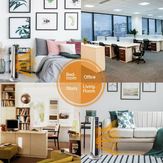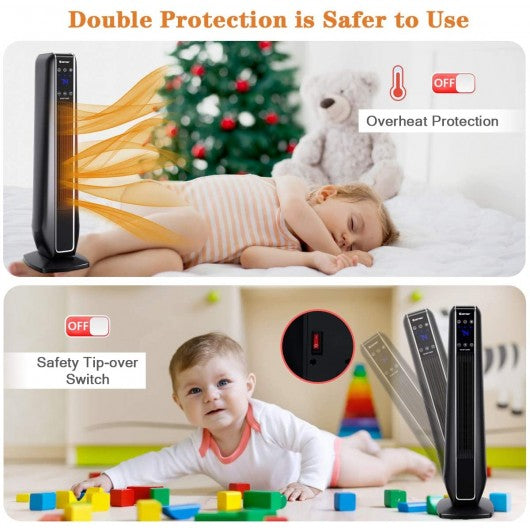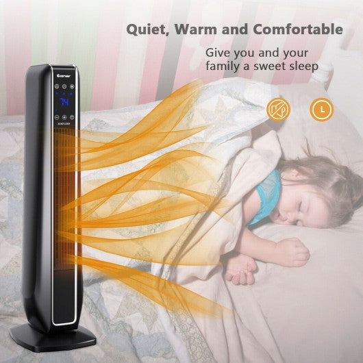 This oscillating space heater will improve your quality of life and create a warm and comfortable atmosphere for you.   72� widespread oscillation can fast and evenly warming the entire room while maintaining a consistent temperature. The temperature and power can be adjusted according to your different needs. Overheating and tip-over protection will effectively protect the safety of your family members. You will have a better sleep due to the noise-free design. The remote control and LED display make it easy to operate. And the portable handle is easy to move and carry. You can use it in the living room bedroom study and office to accompany you through a warm winter.   This is the heater that you don�t want to miss. Come and buy!   Fast and efficient heating can quickly warm the whole room It can rotate from side to side within 72 degrees 3 modes to choose from to meet your different needs Remote control and LED screen are easy to operate You can set your desired room temperature from 50?-95? Designed with a timer function from 1-8 hours The heater works almost silently to make you sleep better Overheating protection and safety tip-over switch prevent accidents and increases safety. Thoughtful carrying handle design is easy to move You can store the remote at the top to avoid loss The whole machine has ETL certification and the plug has UL certification Sturdy base is not easy to shake for stability It includes detachable dustproof filters for easy cleaning
