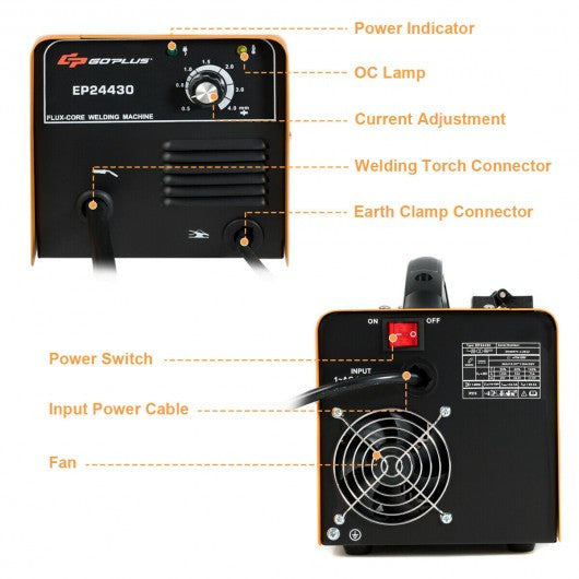 This welding machine with IGBT inverter technology will offer you efficient welding experience. Equipped with advanced IGBT power devices this welding machine will provide you with reliable and stable using experience. And you can easily adjust the knobs to get the current you want. Overheat protection and OC lights ensure good safety. The portable welder is perfect for making home DIY products. So make your order today and enjoy the product! Constructed of high-quality iron frame to ensure sturdiness and durability Reliable and stable IGBT inverter technology Perfect for welding steel and other metal material Overheat protection for automatically shutting down OC lamp to remind the excessive temperature Adjustable wire feed speed knob to get proper welding current Refined handle for easy carrying Compact size for storing in car trunk warehouse etc Electric choke control less spattering deep penetration and good formation Ideal for home DIY and general repairing work Good tolerance when working under unstable voltage No need to match working voltage and feed speed respectively for easy use Work efficiency can reach more than 85% Anti-skid protective foot pads for stability Including earth clamp welding torch welding wire brush PP mask Comes with UL certified plug