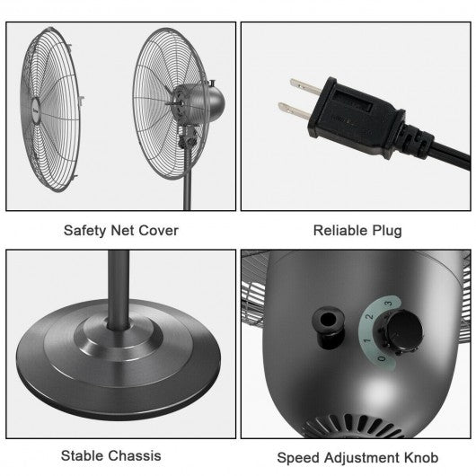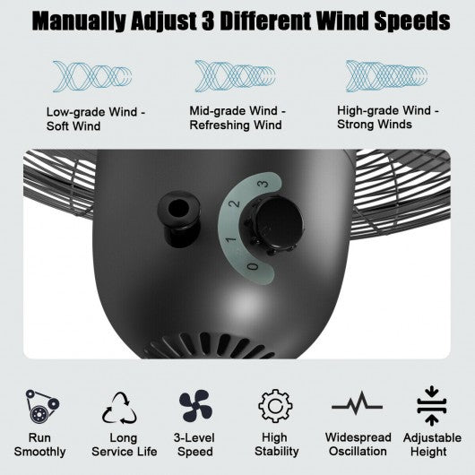 16" Metal Adjustable Oscillating Pedestal Fan-Black