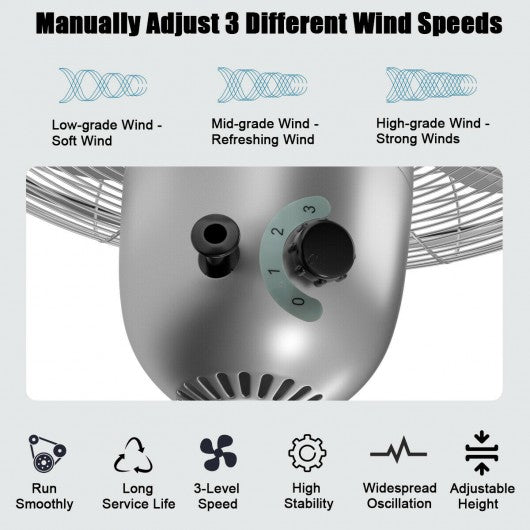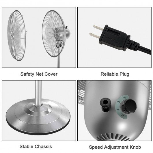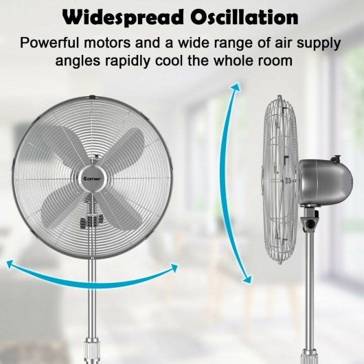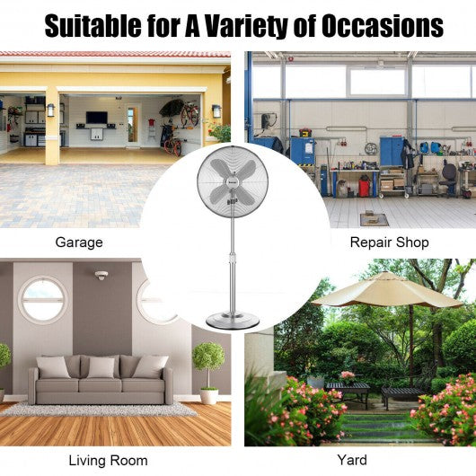 16" Metal Adjustable Oscillating Pedestal Fan-Silver
