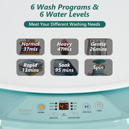 8lbs Portable Fully Automatic Washing Machine with Drain Pump-Green
