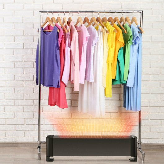 In winter clothes always take a long time to dry. At this time all you need is a baseboard hardwire zone heater like ours. In addition to drying clothes our heater can quickly heat the entire room.The wide air inlet and outlet can make the airflow quickly so as to achieve the purpose of rapid heating. In order to reduce potential safety hazards we designed a double safety guarantee for this heater. When the heater is accidentally turned over it will automatically stop heating to prevent fire. Built-in overheat protection can also reduce safety hazards. In addition the two switches on the side are easy to operate. Our heaters are designed with full consideration of function safety and beauty to bring you a perfect shopping experience. If you are looking for this product don't hesitate to buy it! Perfect indoor baseboard heater with quiet operation 500W/1000W heating power to meet different needs 2 switches on the side for easy operation Anti-scalding grill prevents users from being accidentally scalded Tip-over & overheat protection prevent an accident Stable structure and premium material for long-term service Can be used to heat the room or dry clothes Detachable supporting feet ensure that the heater stands firmly UL certified plug ensures high quality and safety