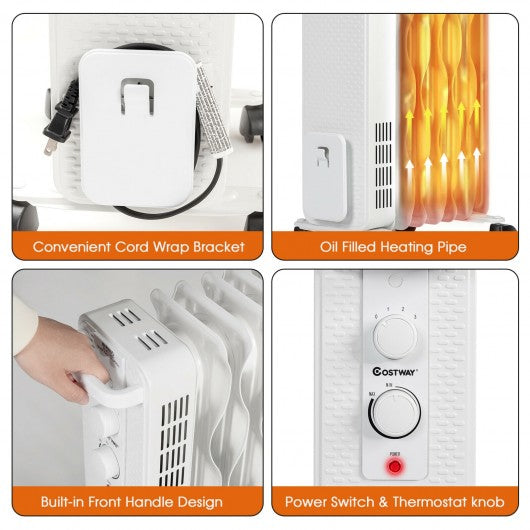 1500 W Oil-Filled Heater Portable Radiator Space Heater with Adjustable Thermostat-White