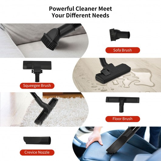 Thanks to a 1200W/4.8 HP motor this wet dry vacuum cleaner makes cleanup easy whether for liquid spills or debris in the home. It also has a blowing function to blow out dust that is difficult to reach. 6.6-gallon collection tank allows the vacuum cleaner to cleaning a lot at a time. 32ft power cord makes it possible to clean hard to reach corners without unplugging the unit. In addition 4 wheels are easy to rotate at any angle which makes vacuum much convenient. High-efficient filtration system can deal with most cleanup jobs which is suitable for home garage workshop car shop etc. If you are looking for a wet dry vacuum cleaner like this do not hesitate to place the order! 6.6 gallon capacity ensures long cleaning time without emptying the trash frequently 1200 W/4.8 HP powerful motor features strong suction and high performance Dry suction is perfect for dust debris sand sawdust etc Wet suction is suitable for liquid spills like sewage drinks Blowing function can blow out defoliation and dust An ideal choice for floor stairs car sofa and so on The washable filter can be cleaned regularly for reuse Flexible wheels are designed for ease of movement 32' power cord provides easy cleaning for hard-to-reach corners
