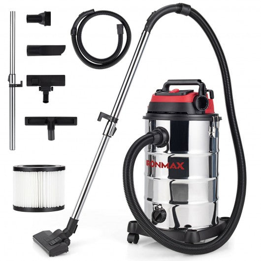 This portable vacuum cleaner is made of premium stainless steel and durable PP material which ensure a long-time service. 1200W 6 HP motor makes it easy to suck all kinds of debris. Plus the 9-gallon collection tank can provide a long cleaning time for you without emptying the bucket frequently. And the sponge filter can effectively filter out dust for great use experience. Besides the waterproof surface is designed to work even in a humid environment. Wet dry vacuum is suitable for dust dirt debris sand sawdust wood chippings metal shavings liquid spills. The vacuum cleaner also has a blowing function which can blow out dust that is hard to reach. One vacuum solves all sorts of cleaning problems! If you are looking for a vacuum cleaner like this do not hesitate to place an order! Premium stainless steel and PP material make it durable and sturdy Dry suction is suitable for cleaning dirt leaves gravel glass scrap Wet suction is perfect for sewage milk fruit juice drinks and other liquids Blowing function can blow out something lightweight such as defoliation and dust etc. Large 9 gallon capacity tank ensures long cleaning time without emptying the trash frequently 32 ft power cord and 6 ft hose for cleaning larger areas The switch button is waterproof and can be pressed easily Flexible wheels are convenient to move with less effort