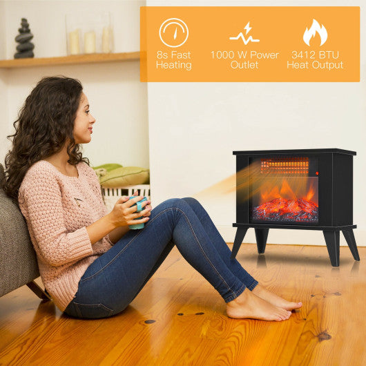 Do you want to get rid of coldness? This electric fireplace heater is the perfect solution. This infrared heater will create a warm and cozy ambiance for you in cold winter with high efficiency. And its overheating protection tip-over protection and flame protection effectively protect you from potential dangers. Designed with low-noise operation and thermostat system the heater provides warm and quiet environment when you are working resting and reading. The simple control panel allows you to conveniently adjust the temperature and flame effect. Moreover the lightweight mini heater saves a lot of effort for you to move and store. With clear instructions and numbered parts you can finish the assembly and use the heater in a correct way. If you are looking for such a fireplace do not hesitate to place an order! Appealing flame effect is free of harmful elements like smoke and dust 1000W high-efficiency heating provides you with endless warmness Comes with 50℉-104℉ wide temperature adjustment range Allows you to appreciate the flame without heating Overheat protection tip-over protection ETL certification for maximum safety Cool-to-touch surface ensures higher safety Easy to operate with convenient control panel Quiet operation creates a cozy relaxing environment Suitable for living room bedroom office etc. Only four legs need to be installed