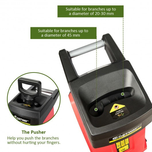 15Amp Electric Wood Chipper Garden Shredder with Wheel