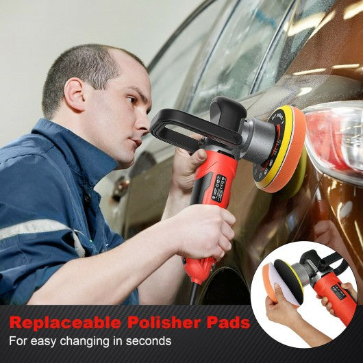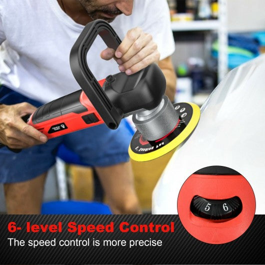 This polishing kit has a total of 6 variable working speeds for you to choose from which range from 2400-6400 rmp. And its high-quality motor generates strong power to help you improve the work efficiency while good heat dissipation ensures safe operation. There are 2 detachable handles as well 1 side handle and 1 D handle ergonomically designed to reduce your hand fatigue during working. Furthermore the polisher can be applied to different materials such as marble tile furniture and ships. It polishes clean excellent gloss without damaging the surface of the workpiece. If you are looking for a product like that do not hesitate to buy it! 6 variable speed ranging from 2400-6400 rmp to meet your different needs 4 kind pads adapt to different materials and easy to switch 2 detachable handles including a side handle and a D-shaped handle Quick carbon brush change system for good maintenance Non-slip rubber handle to make your grip comfortable Efficient heat dissipation capacity to prevent it from overheating Suitable for car polishing waxing sanding and floor sofa polishing Powerful copper motor to ensure its durability and make your car shine quickly